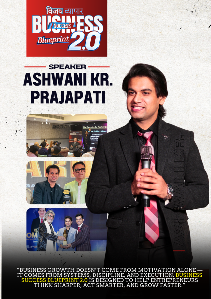 The program is mentored by Ashwani Kr Prajapati , India’s Youngest Business Coach , known for transforming struggling businesses into profitable ventures. He has delivered 220+ seminars across 16 states and mentored 40+ businesses , making him one of the most trusted names in business growth.
